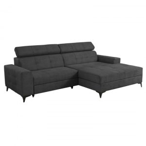 Coltar MARIBO II extensibil, cu arcuri si lada depozitare, colt dreapta, gri inchis, 282x205x92 cm