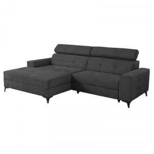 Coltar MARIBO II extensibil, cu arcuri si lada depozitare, colt stanga, gri inchis, 282x205x92 cm