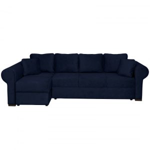 Coltar MARIBO II extensibil, cu arcuri si lada depozitare, colt stanga, albastru, 282x205x92 cm