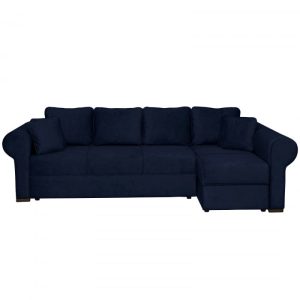 Coltar MARIBO II extensibil, cu arcuri si lada depozitare, colt dreapta, albastru, 282x205x92 cm